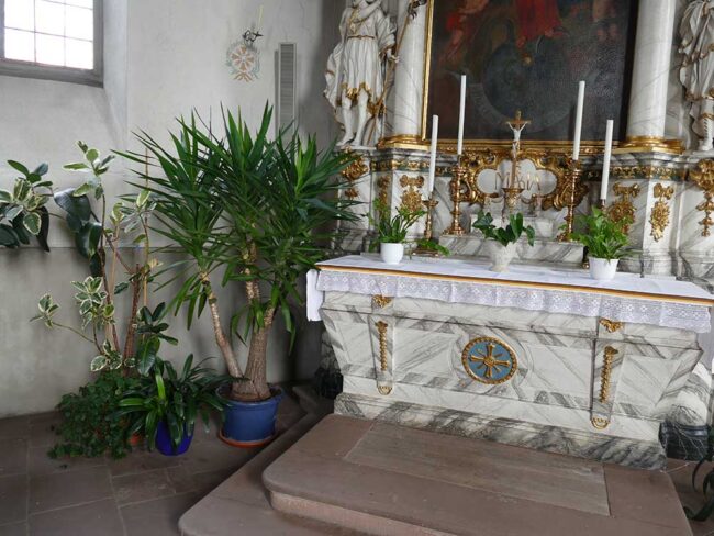 Urwald am Altar Die Grünpflanzen gedeihen prächtig. Ein Schmuck sind sie nicht.